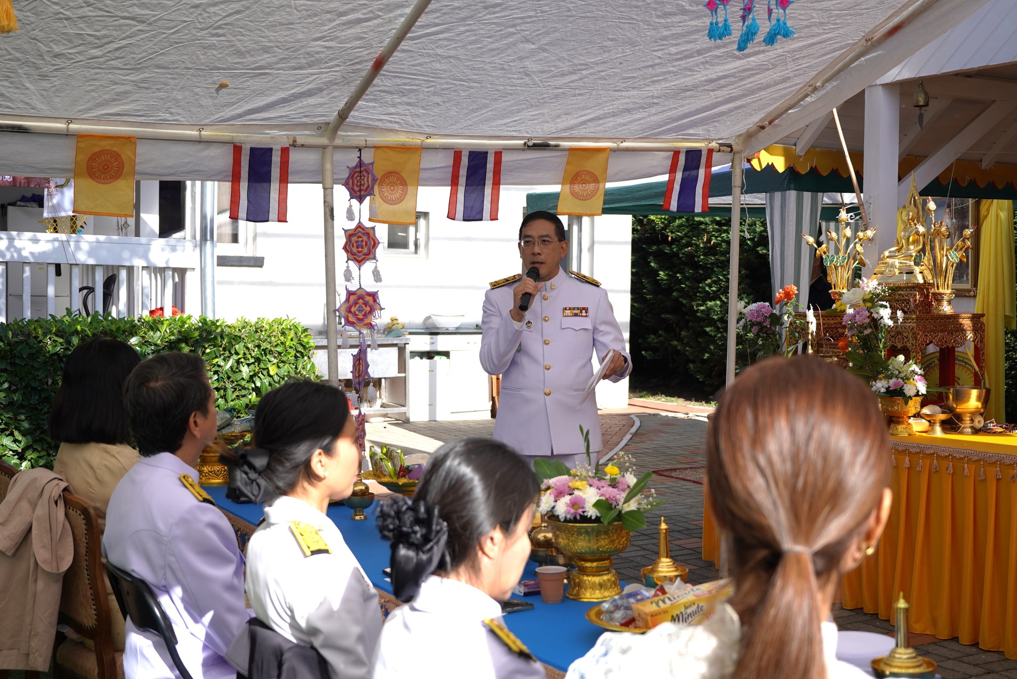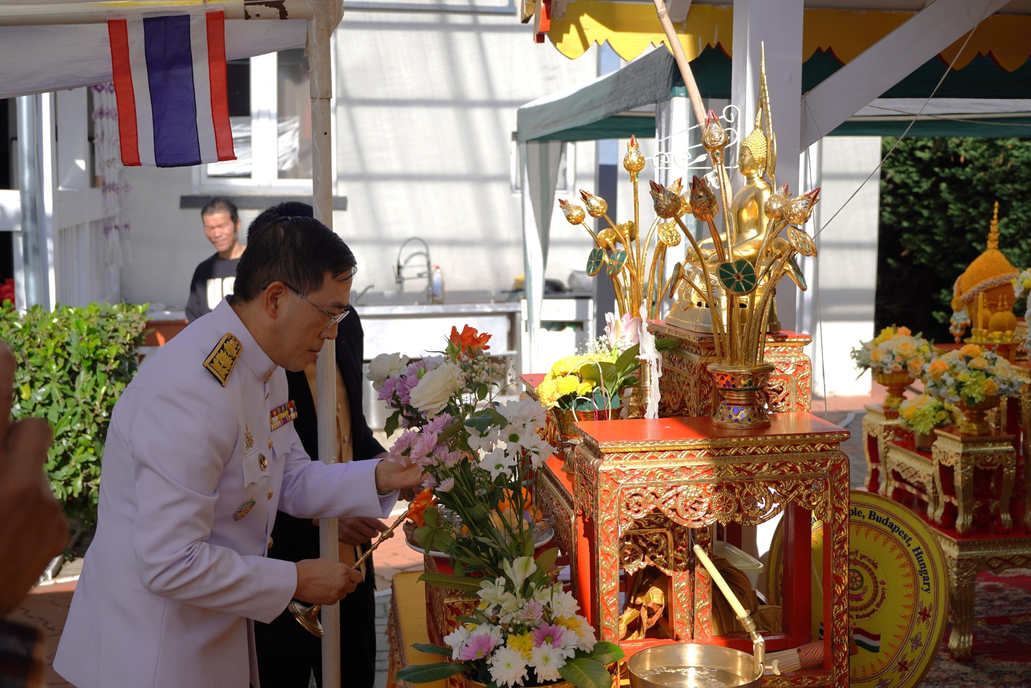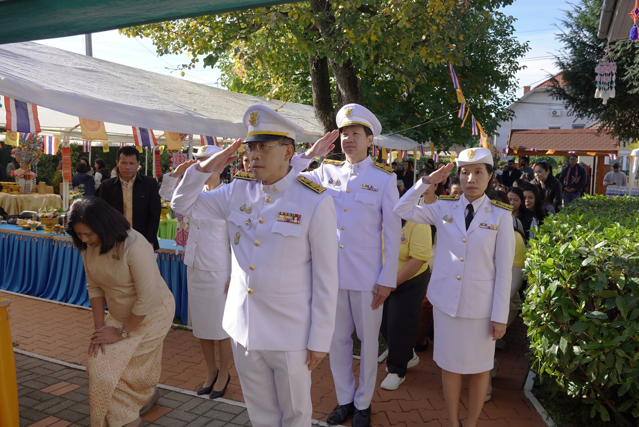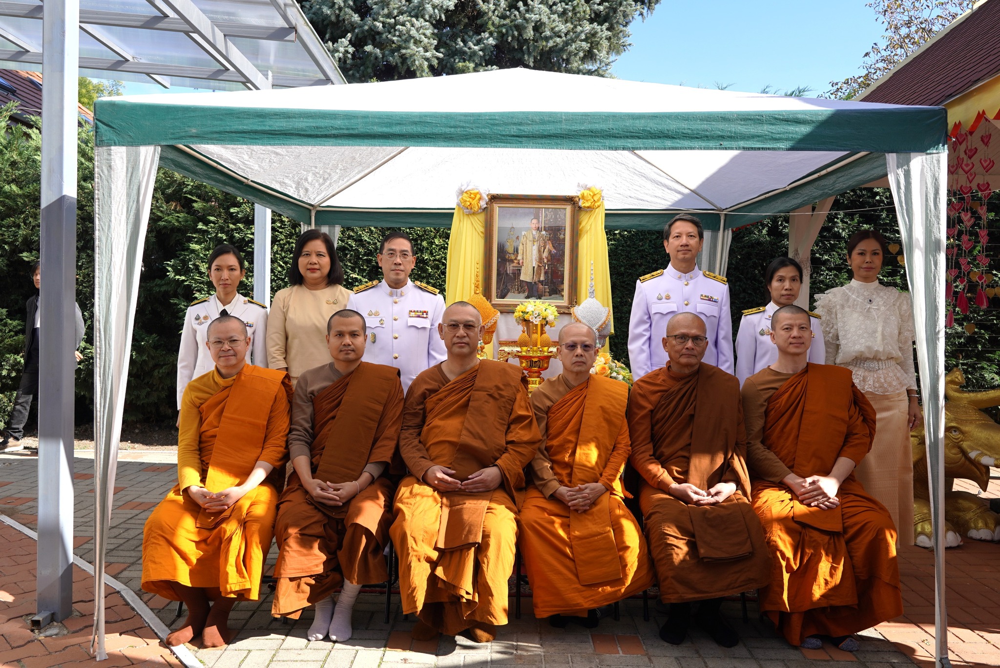 On 13 October 2025, the Royal Thai Embassy in Budapest together with Wat Thai Rattanaprateep orgnised a religious ceremony on the occasion of "Nawamintha Maharaj Day" in honour of His Late Majesty King Bhumibol Adulyadej the Great Memorial Day on 13 October 2025, H.E. Mr. Phrommes Bhaholpolbhayuhasena, Ambassador of Thailand to Hungary led the Embassy staff, along with the Thai Community in Hungary, to perform merit-making ceremonies to express their gratitude and appreciation for the remarkable contributions of His Late Majesty King Bhumibol Adulyadej The Great to Thailand and the Thai people, at Wat Thai Rattanaprateep temple. After that, the Royal Thai Embassy and the Thai Community in Hungary clean up the Temple’s garden as part of the Royal Volunteer Service.